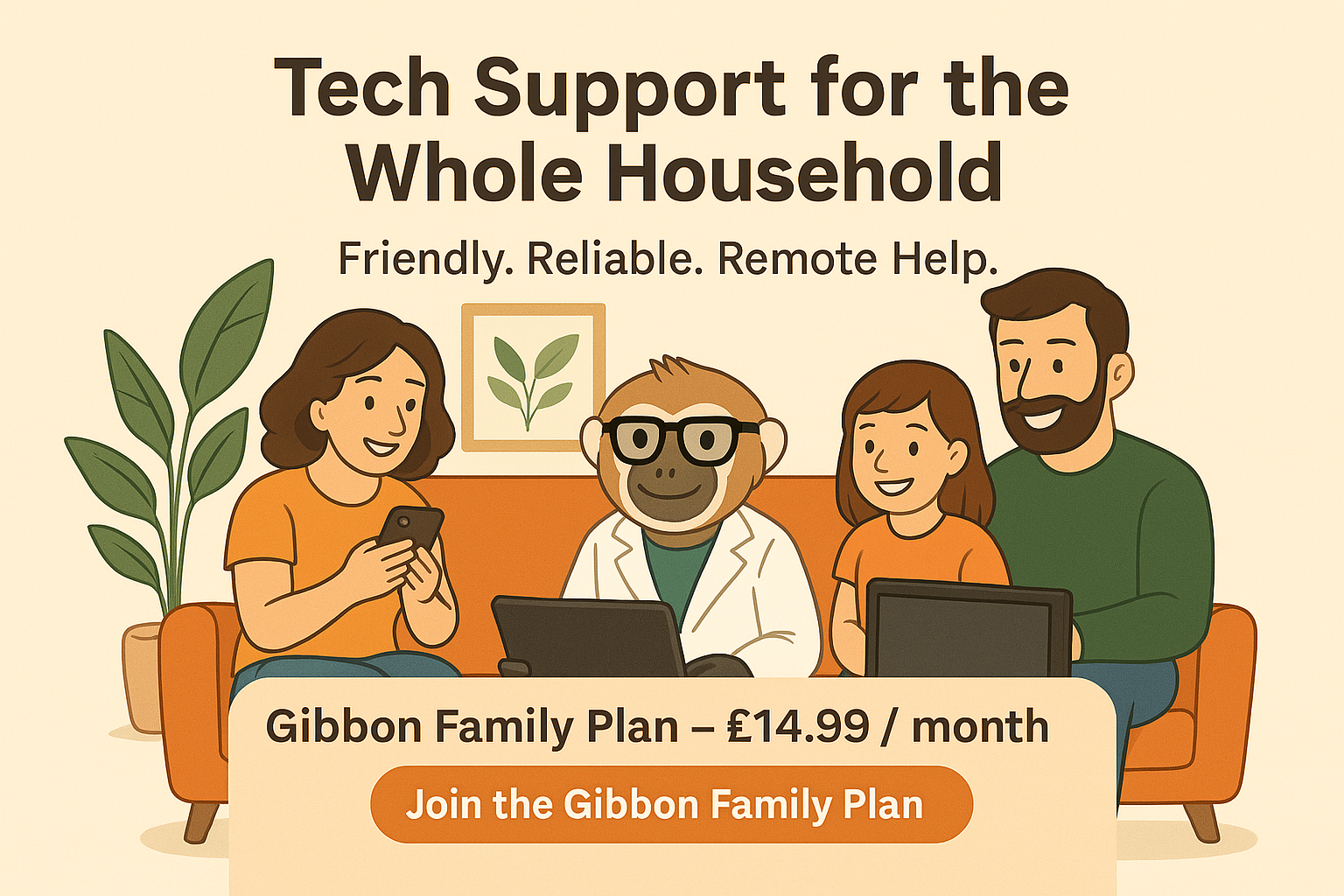 Modern households run on tech β and tech runs better with a Gibbon on standby. Whether itβs Mumβs work laptop, the kidsβ gaming rig, or Grandadβs ancient tablet that wonβt switch onβ¦ weβve got it covered.